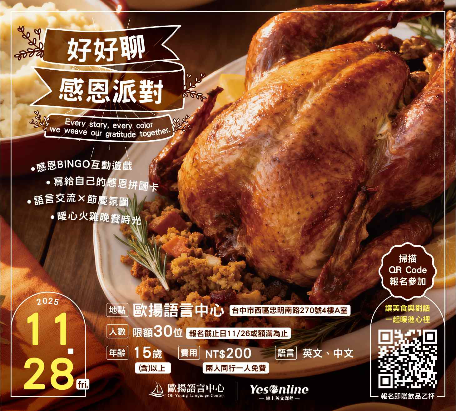 新飛今年滿9歲啦!從一開始的菲律賓遊留學,到後面拓展更多歐美國家,甚至開創了學習語言的「Yes Onilne線上英文」與實體的「歐揚語言中心」,打造更全面的語言學習服務,更在去年成立了「洞心咖啡研究室」的事業部,坐落於新竹市但放眼世界,讓你不僅可以來喝杯咖啡,也可以藉由【咖啡課程×語言學習】學到一技之長,還能前往澳洲咖啡廳打工呢!現在就跟著我們一同歡慶9周年慶吧!….
