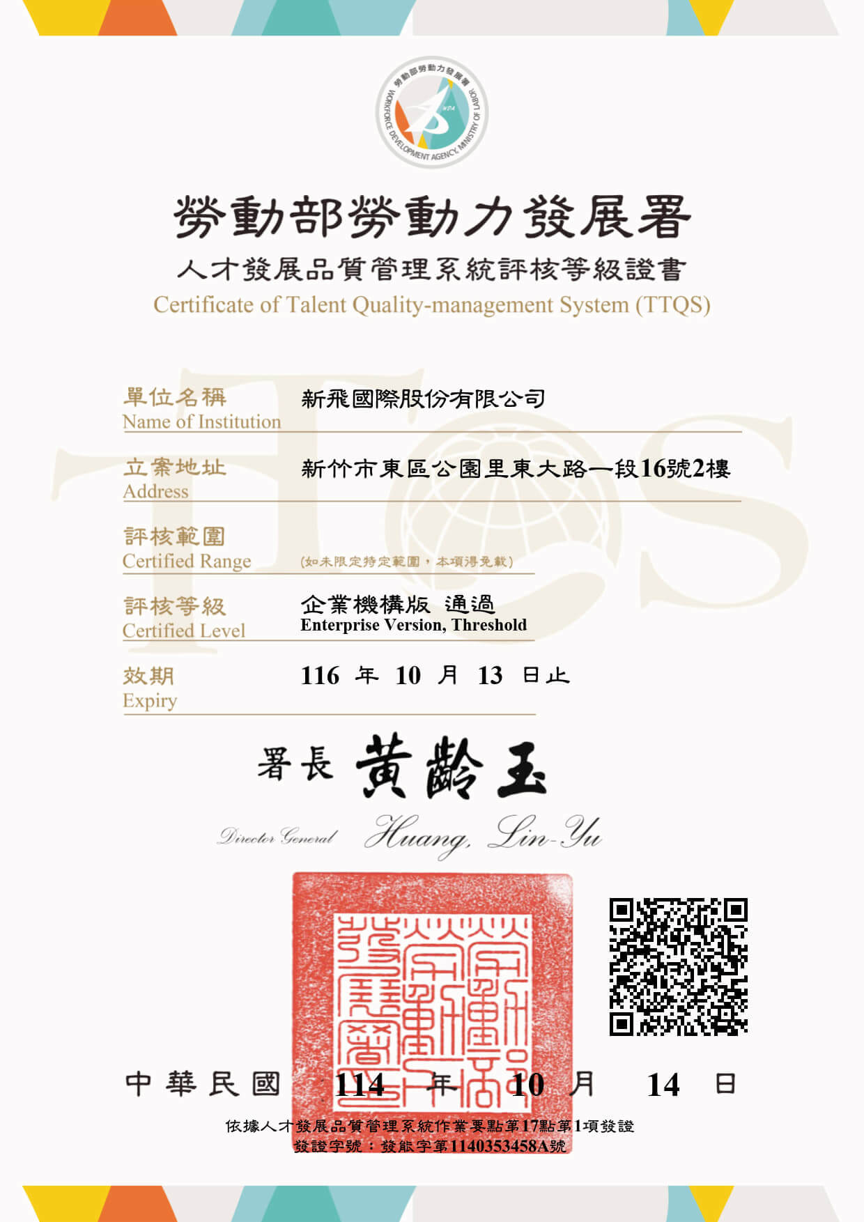 TTQS 是由勞動部推動的訓練品質管理系統,旨在提升企業訓練品質與員工學習效益。通過評核代表我們的課程與內部訓練流程達到國家標準,並持續追求高品質的學習環境。